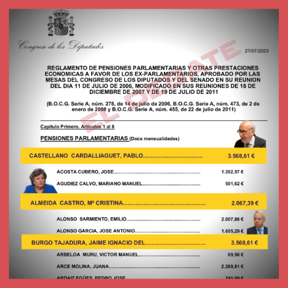 Para ellos, sin embargo, el lujo se mantiene, según consta en la documentación oficial del Congreso a la que ha accedido El Debate: se trata de todos los antiguos miembros del Parlamento que, cuando se decidió acabar con esa prebenda en 2011, ya la venían cobrando y la nueva legislación promovida les exoneró de su cumplimiento.