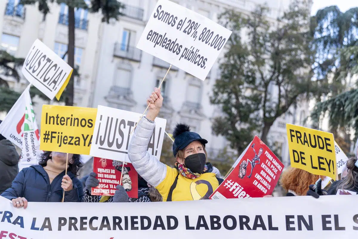 José Luis Gutiérrez, uno de los portavoces de la Coordinadora Estatal de Personal de Empleo Público, explica a Confilegal el proyecto. Sobre estas líneas, una imagen de una de las manifestaciones que los interinos han llevado a cabo en España. Foto: EP.