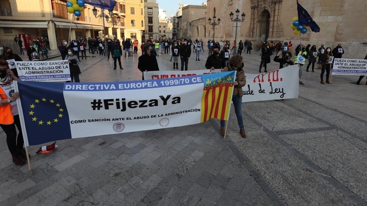 La presión sindical para hacer fijos a los interinos que llevan más de tres años trabajando en los ayuntamientos sigue creciendo. La paralización de los procesos de estabilización de 400 trabajadores en el Consistorio ilicitano por parte del juzgado tras la presentación de un recurso ha acabado motivando la creación de un grupo de denunciantes «en abuso de temporalidad» para llevar a los juzgados europeos los incumplimientos en materia laboral de índole comunitaria sobre los trabajadores públicos de la Comunidad Valenciana», según explica la Federación Estatal de Trabajadores y Trabajadoras de la Administración Pública (FETAP) y el sindicato CGT Elche.