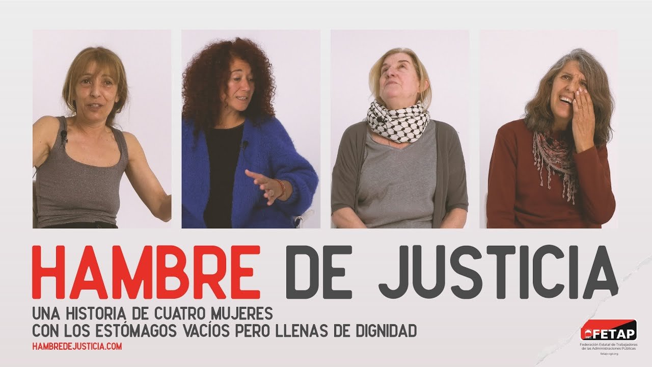 Tráiler: • Tráiler | Hambre de Justicia Año: 2024 Duración: 54 minutos Protagonistas: Coro Alonso Fuentes, Irune Saiz Oro, María Jesús Casado Sanz y Raquel de la Riva Fernández Realizador: Pablo Híjar Guion: Julián Pérez Moreno y F.J.F. Pacheco Producido por la Federación Estatal de Trabajadoras de las Administraciones Públicas de CGT (FETAP-CGT)
