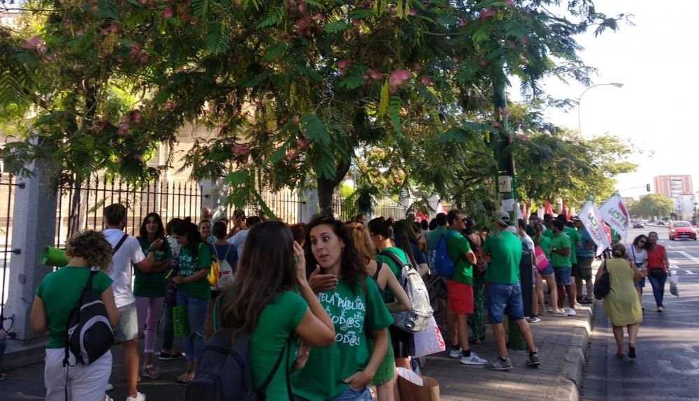 4. Basta de recortar líneas y plazas. Cada año nos sorprendemos con la eliminación de nuevas líneas en nuestros centros educativos públicos. Esto, no sólo redunda en una masificación de las aulas y el empeoramiento de la educación que se ofrece, sino también, en la reducción de plazas y vacantes que cada año se sacan en todas las especialidades. Consideramos gravísimo que estén uniendo grupos de distintas edades conformando en suelo urbano aulas mixtas propias de zonas rurales despobladas, como está ocurriendo en el barrio de Pino Montano de Sevilla, una ciudad altamente poblada. Basta de desmantelar nuestros centros educativos públicos, basta de reducir las vacantes y plazas. Dinero público, para centros públicos. Los concertados se crearon como medida excepcional. Si quieren mantenerlo, que utilicen a partir de ahora a personal público, aumentando así el número de vacantes.