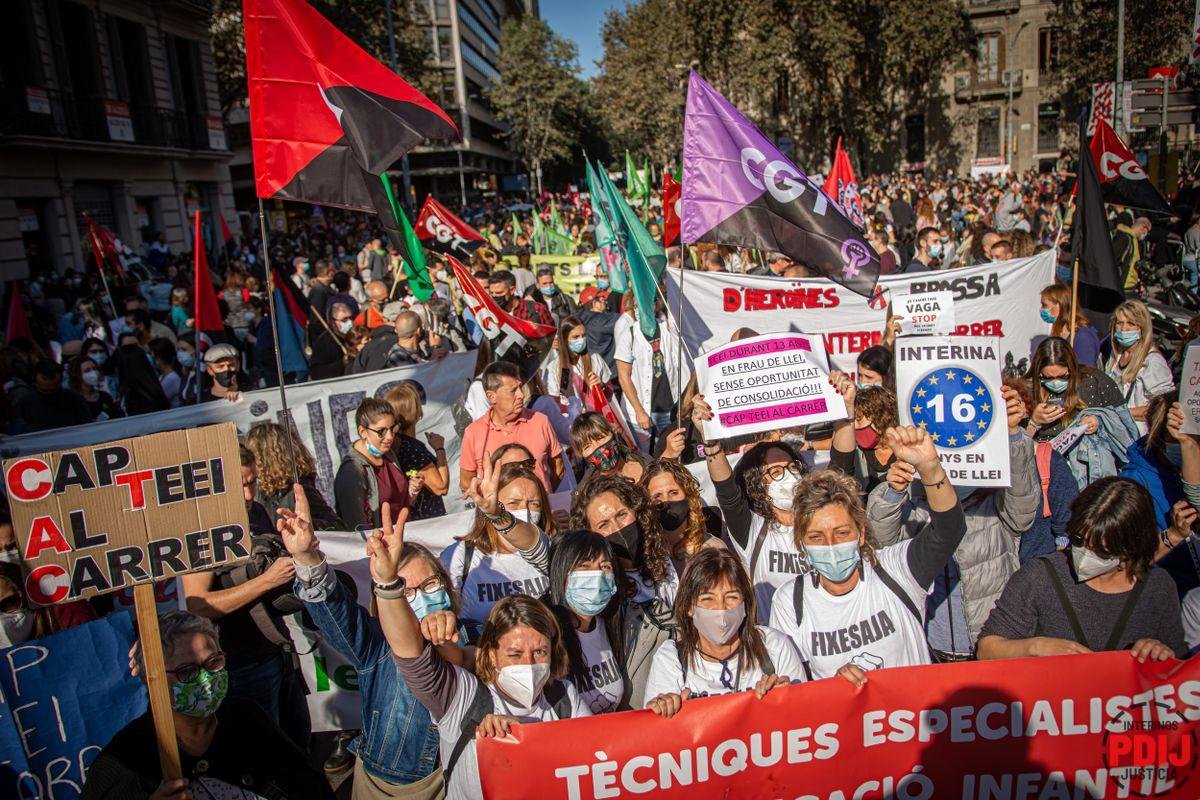 El Govern de la Generalitat ha puesto en marcha la maquinaria administrativa para estabilizar 59.000 plazas actualmente ocupadas por interinos en fraude de ley. La mayoría de ellos docentes y sanitarios, en el que la Generalitat ha calificado como el "mayor" proceso de estabilización de la historia de la institución. Y pretende hacerlo antes del 2025. La administración catalana aspira así a reducir la temporalidad entre su plantilla del actual 35,5%, hasta el 8%, según le obliga la ley estatal. Las bases del grueso de los concursos extraordinarios se publicarán en los dos próximos meses, los exámenes se realizarán antes de acabar este año y las resoluciones llegarán antes de finalizar el 2024. La normativa no garantiza que todos los hoy interinos consoliden su plaza y existe riesgo de que algunos la pierdan, aunque desde la Generalitat confían en que todo aquel que hoy ocupa un puesto de temporal en fraude se quede.