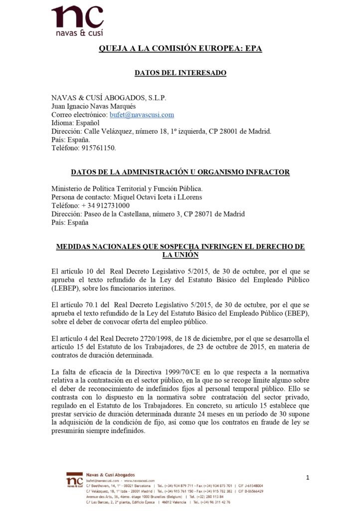 QUEJA A LA COMISIÓN EUROPEA: EPA