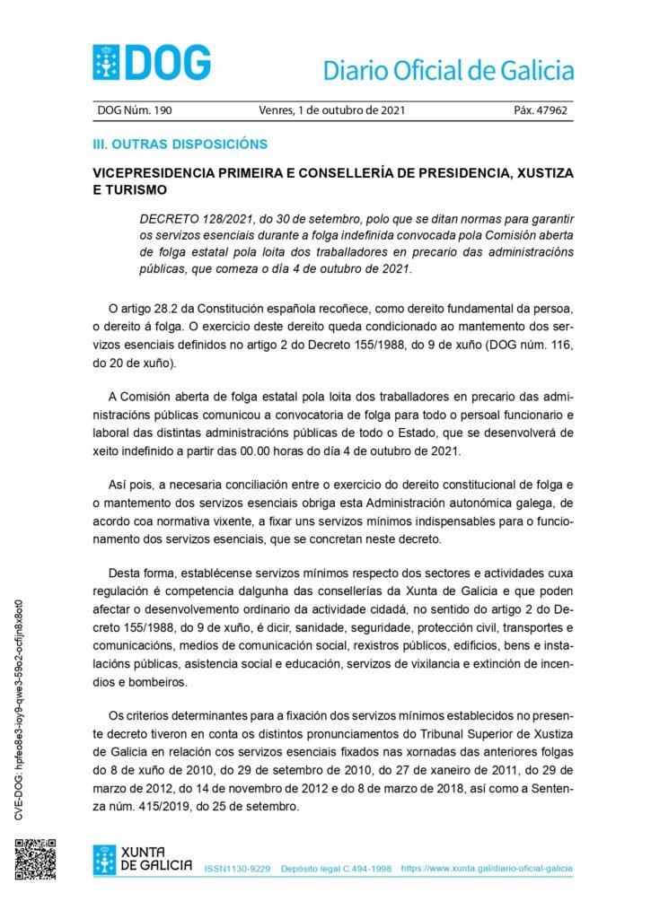 Les adjunto el Diario Oficial de Galicia, se puede descargar el archivo completo. Todavía la convocatoria de huelga, no ha llegado a Canarias, una vez llegue se publicará en el Boletín Oficial de Canarias, y cualquiera se puede acoger a la huelga.