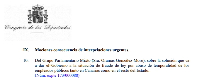 Mañana el Congreso votará la MOCIÓN de Ana Oramas, para REGULARIZAR al personal en abuso de temporalidad
